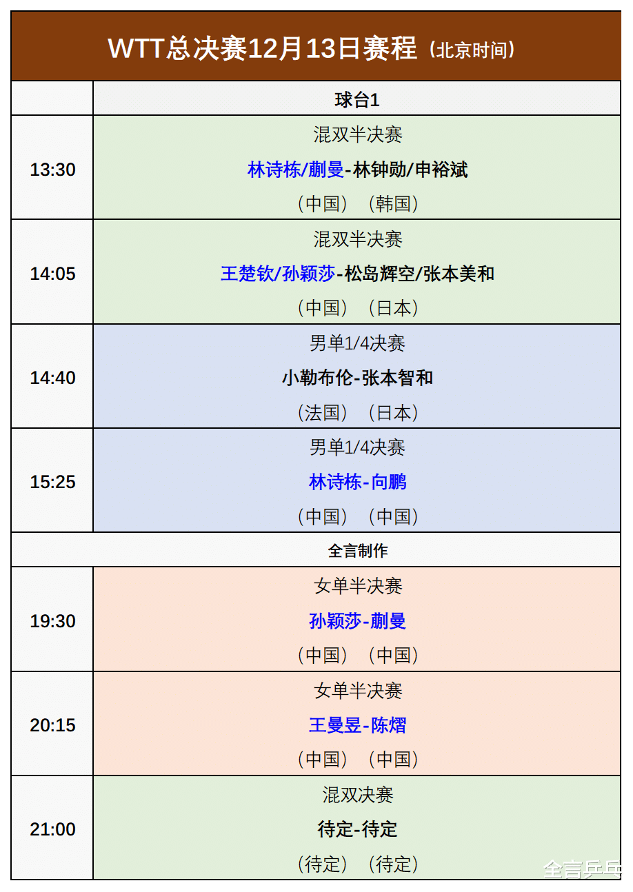 19:30女单半决赛,孙颖莎VS蒯曼;