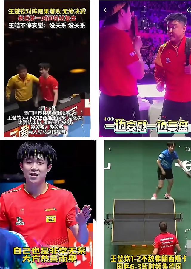 天然王楚钦当今是国乒一哥了,但这只是是马龙离队和樊振东暂时休整的原因,以大头的心态和空洞智商尚未具备的确扛旗的实力,即即是混双亦然屡次靠着孙颖莎的迷惑能力屡次化险为夷。但王皓对王楚钦的偏疼历程却是肉眼可见,而关于刚冒尖的林诗栋却是格调极其严厉!