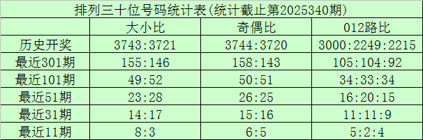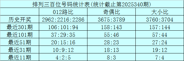 上期回首:摆列三第2025340期奖号为:255。奖号方法组三,大小比2:1,奇偶比2:1,012路0:0:3。