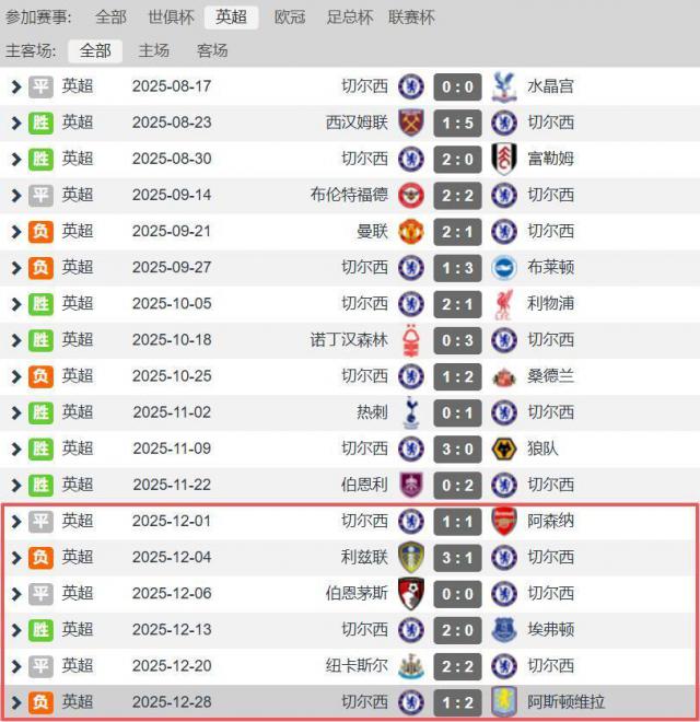 英超 12 轮战罢,切尔西还排行第二,仅过时榜首阿森纳 6 分,卓越曼城 1 分。投入圣诞月(12 月),切尔西的英超联赛获利是遇到了滑铁卢,近 6 轮英超联赛仅得到 1 胜,具体战绩为 1 胜 3 平 3 负,这让切尔西英超排行下落至第五,与第六名曼联同分,还过时低谷时候的利物浦 3 分,近期战况竟然惨绝人寰。
